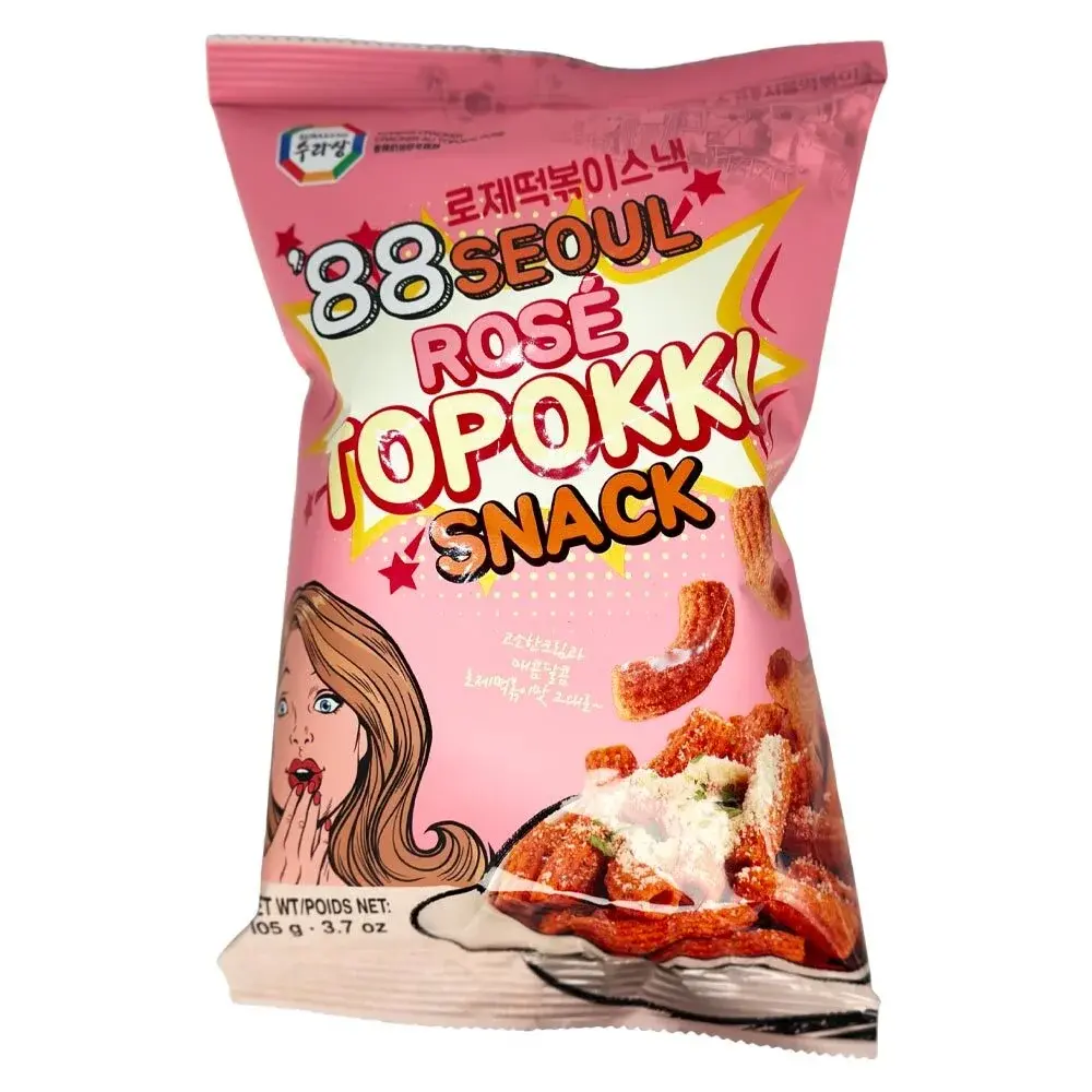 Surasang 88 Seoul rose Topokki Snack - отличная находка для тех, кто любит умеренно острые чипсы без «огненного» вкуса. Рисовые снеки TOPOKKI SNACK помогут быстро утолить голод. Невероятно хрустящие снэки из нежной пшеничной муки отличная альтернатива картофельным чипсам: они легкие, воздушные, с очень приятной хрустящей текстурой.